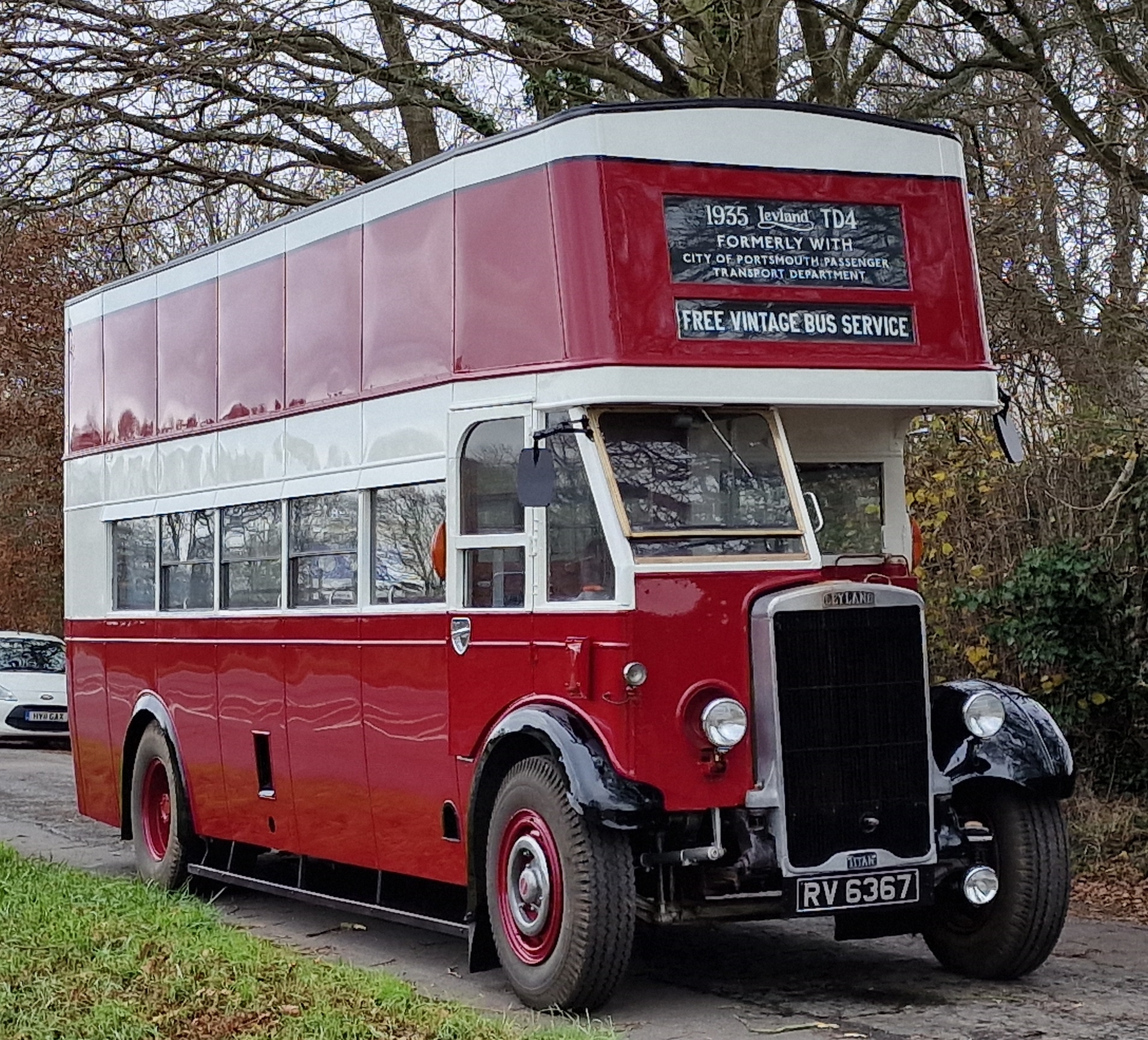 ![]() ![]() | Leyland TD4 no.7 (RV6367) Built 1935 for Portsmouth Corporation with closed top English Electric 50-seat double deck body and was renumbered Converted to open top form in 1955 for use on Southsea Seafront Renumbered 7 from 124 in 1958 Withdrawn 1971 Acquired by WOMP Ltd for continued preservation in 2005 Restoration was completed in 2025 and the vehicle was back carrying passengers on Southsea Seafront in July 2025. |