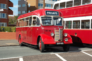 ![]() | Bedford OB no.31 (EHV65) Built 1951 for East Ham Borough Council with Duple 29-seat bus body Withdrawn in the early 1970s and sold for preservation No restoration work was undertaken until acquired by its previous owner in 1984 Later moved to Broad Street where the running units and brakes were overhauled Repainted into the livery of local operator Hants and Sussex which once operated vehicles of this type |