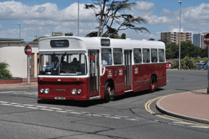 ![]() | Leyland Atlantean PDR2/1 no.190 (TBK190K) Built 1971 for Portsmouth Corporation with Seddon Pennine 40-seat dual door single deck body Fitted with towing hook for use, when required, on the service between The Hard Interchange and the Continental Ferry Port for which a number of luggage trailers were acquired from British Airways Withdrawn in 1982 and sold for preservation to its current owners |